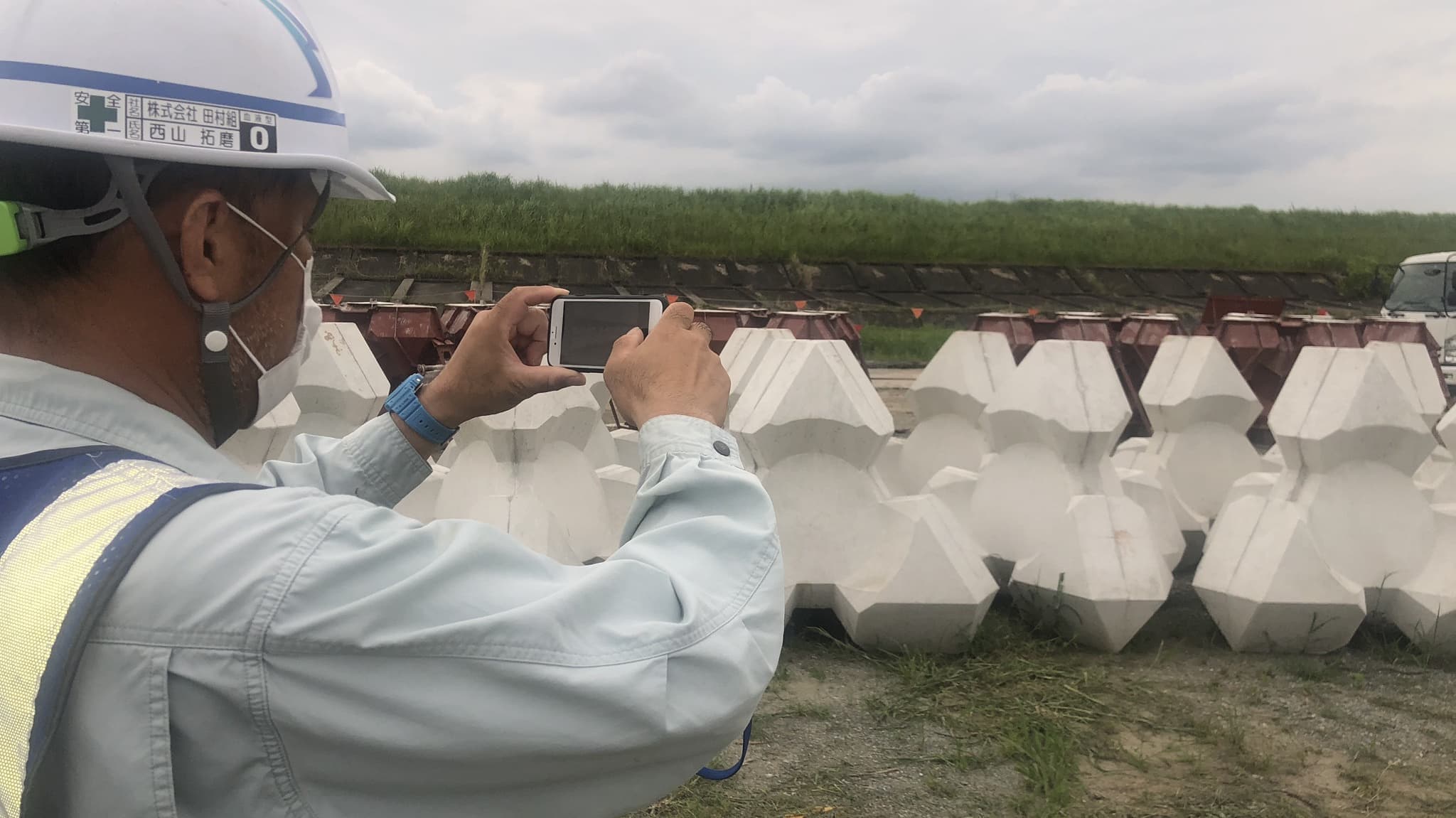二人で工事写真を撮影していました